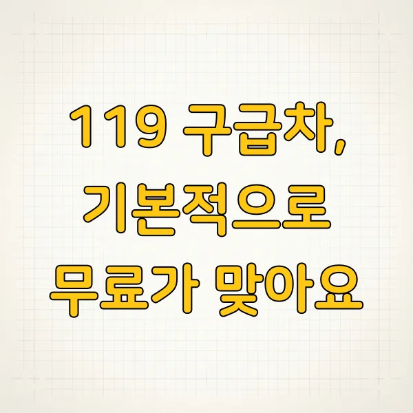[면책 조항] 본 콘텐츠는 119 구급차 이용과 관련된 일반적인 정보를 제공하며, 법적 구속력을 가지지 않습니다. 구급차 이용 및 비용 관련 세부 사항은 거주 지역 소방본부의 규정을 따르며, 구체적인 상황에 따라 달라질 수 있습니다. 응급 상황 발생 시에는 즉시 119에 신고하시기 바랍니다.